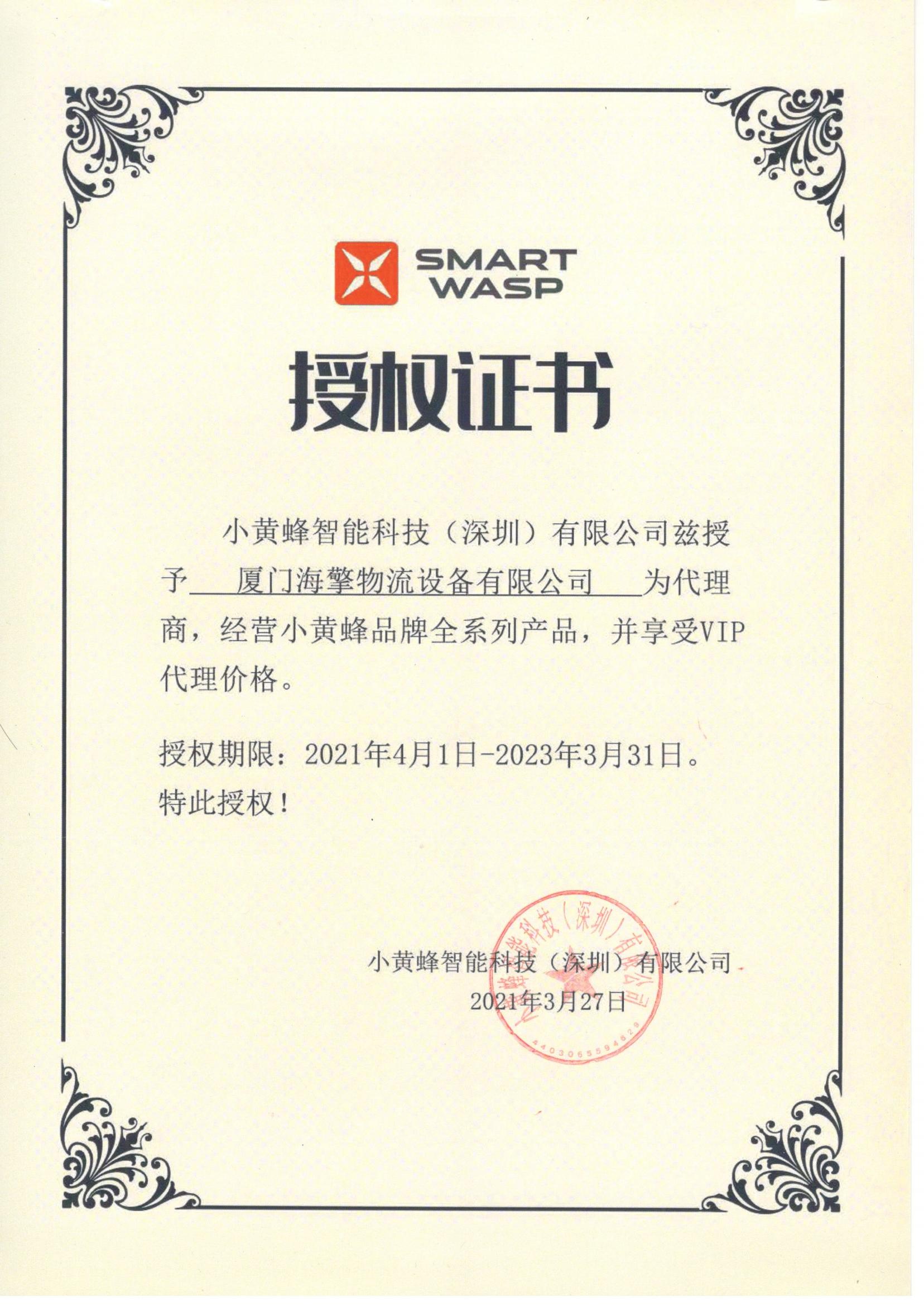 小黃蜂 授權(quán)證書